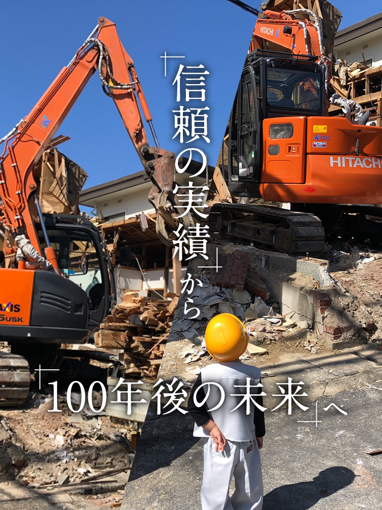 そのような当社は京都府知事許可(般-1)第42327号・産業廃棄物収集運搬業の許可も取得している、「正規解体業者」です。ですので仕事の時は丁寧・真面目な姿勢を常に心掛け、礼儀作法や工事を行う周辺の方への挨拶なども徹底。これは工事に関わる全ての人に快適に過ごしてほしい、という想いをもとに続けています。また仕事を通して、「自分の住んでいる地元である京都市に貢献したい!!」というビジョンを念頭に置き、これからさらに会社が発展していこうと描き続けていく指標です。